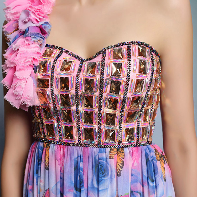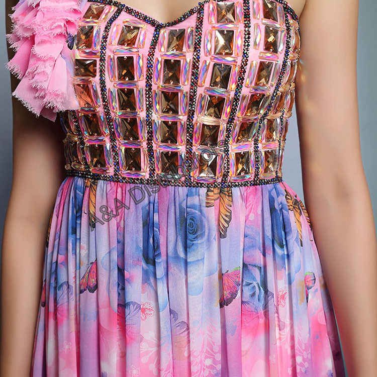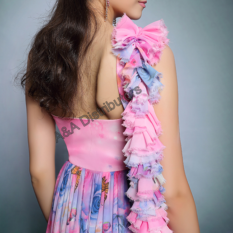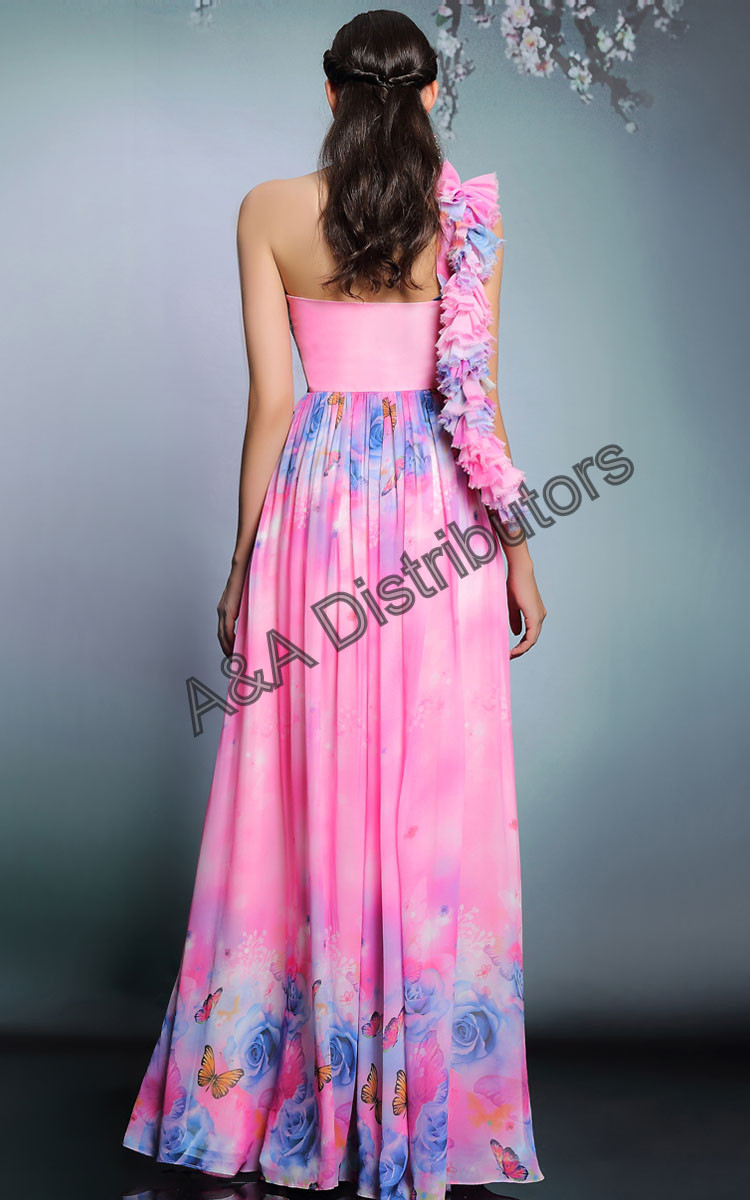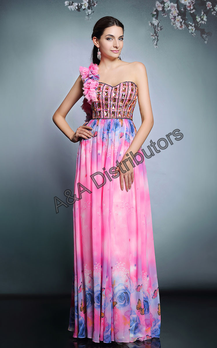 Pink printed long elegant evening dress |