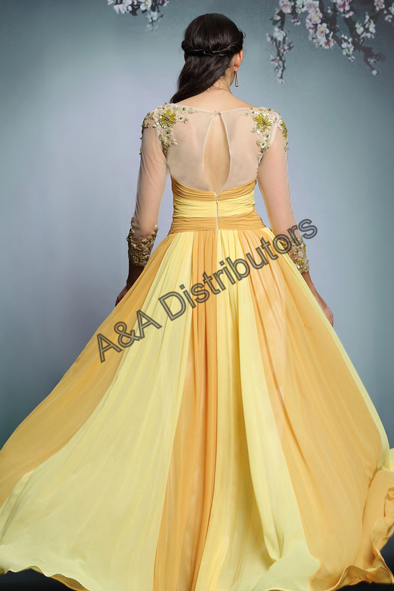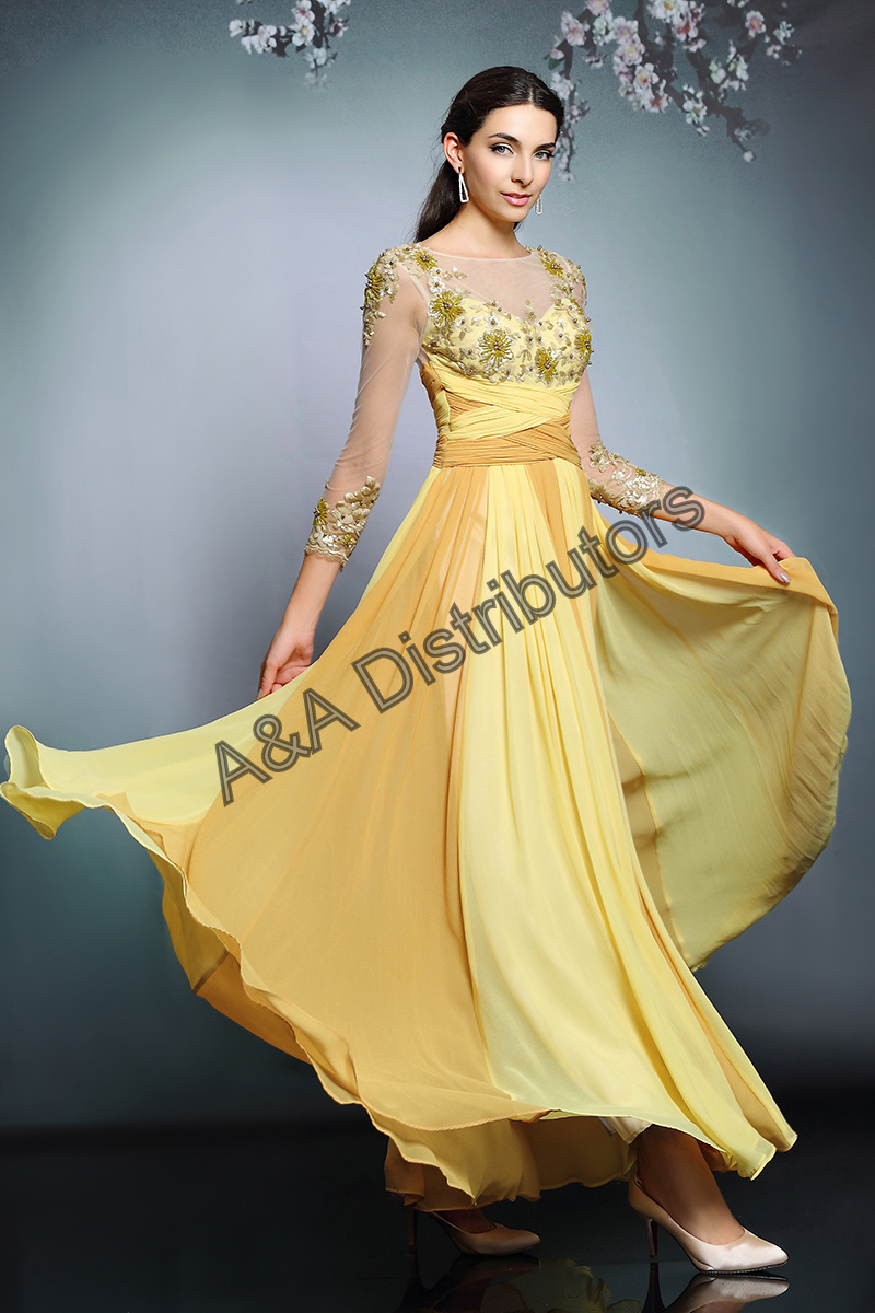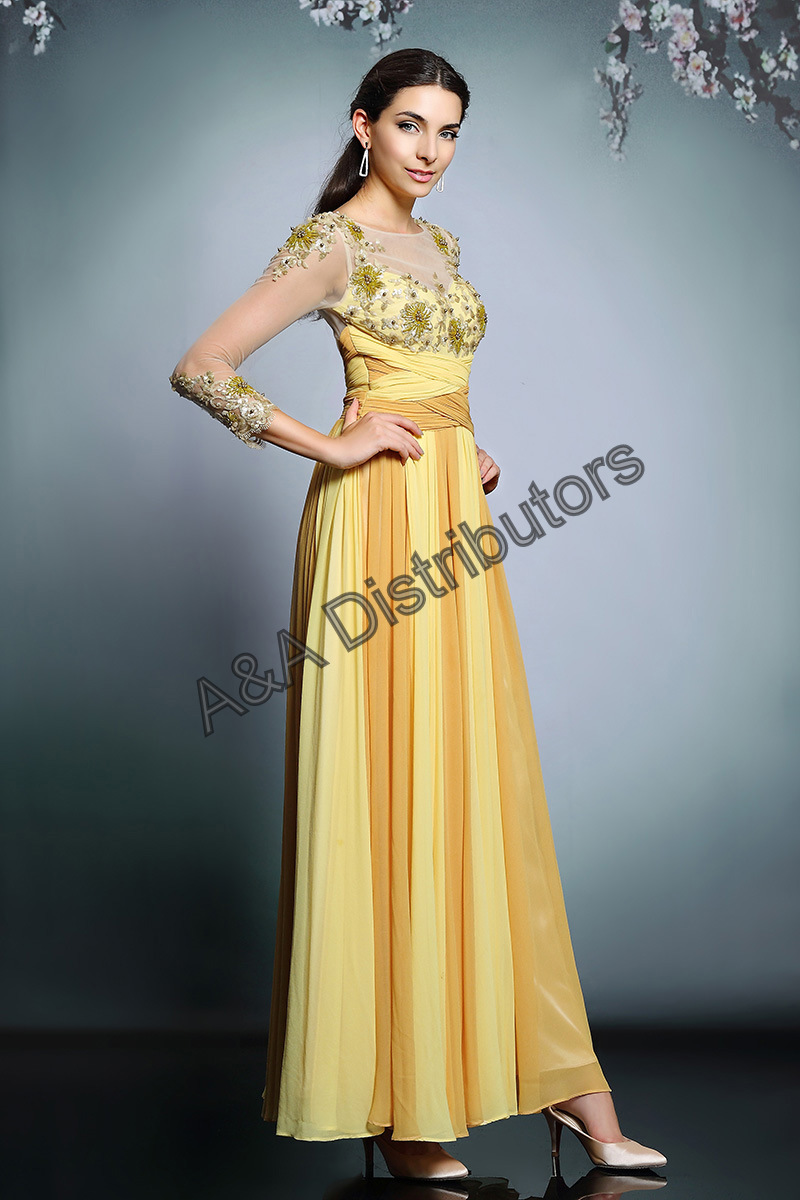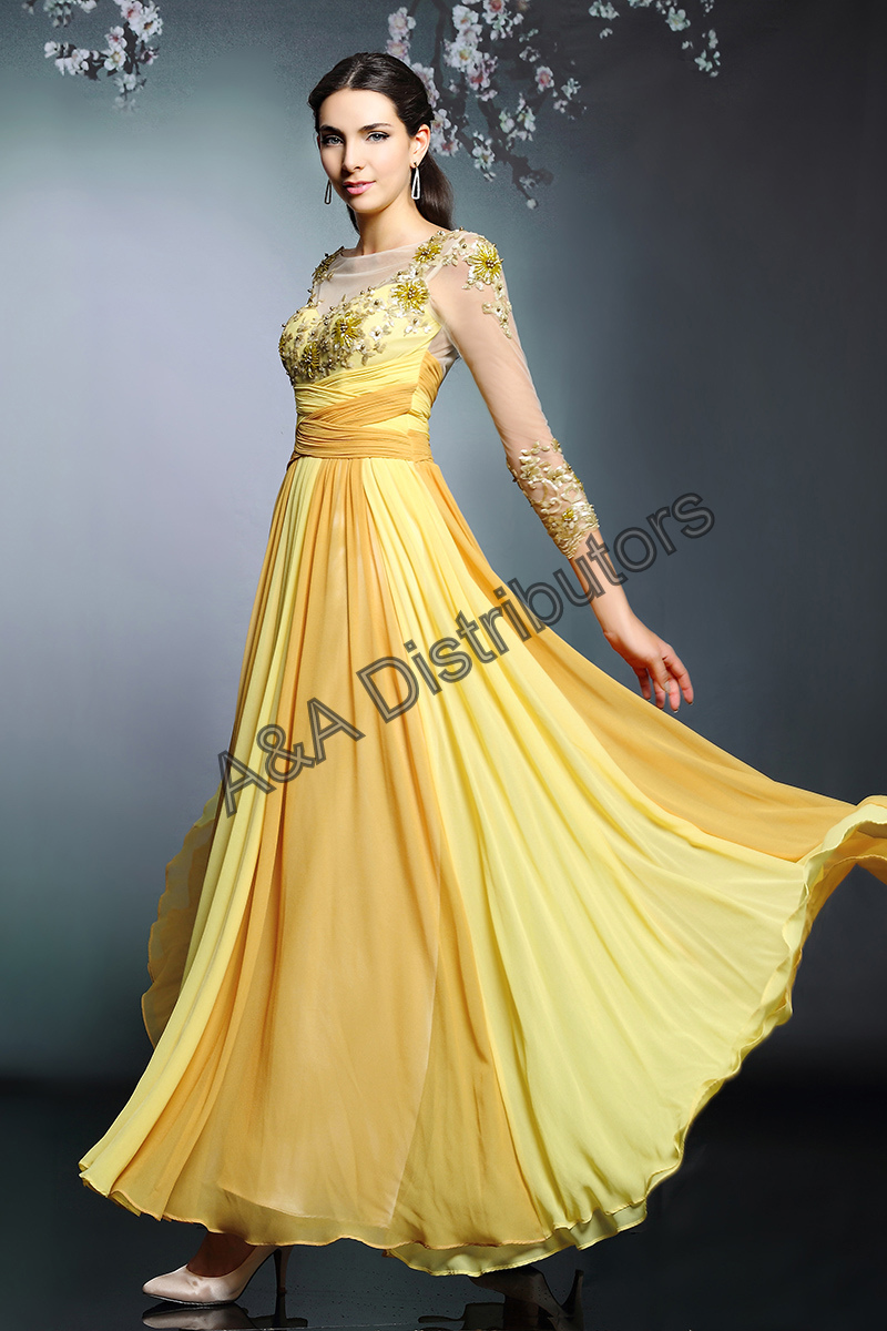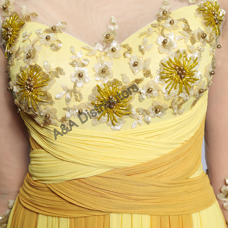 Yellow sleeves long elegant evening dress |