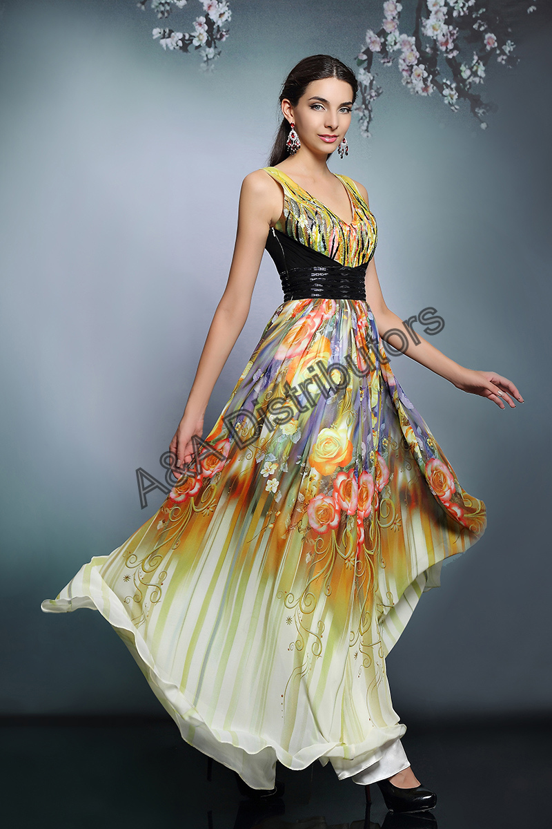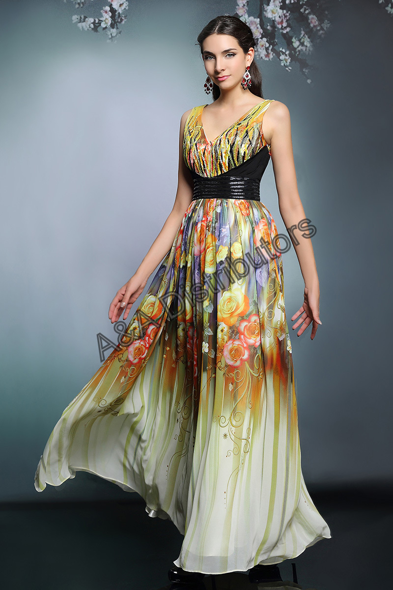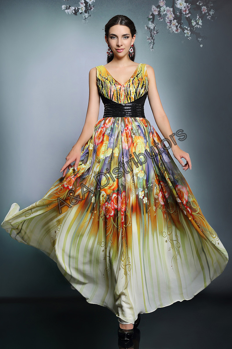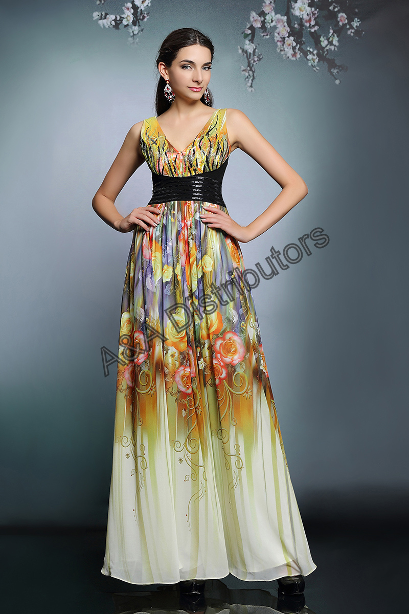 Printed long elegant evening dress |